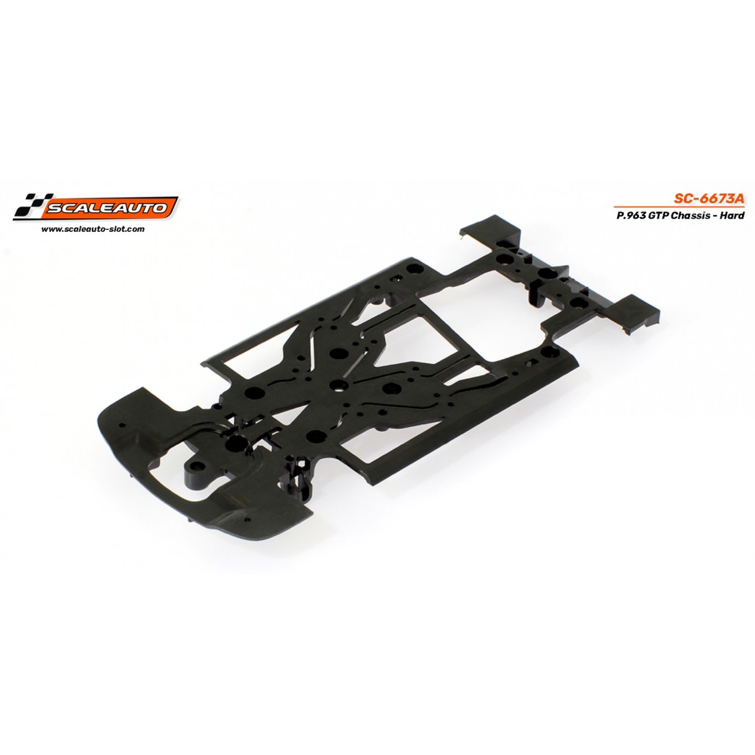 Chasis en plástico inyectado de mínimo grosor (0,65mm) para el nuevo Porsche 963 LMDH GTP. Realizado en color gris con dureza blanda para soporte de motor RT4.