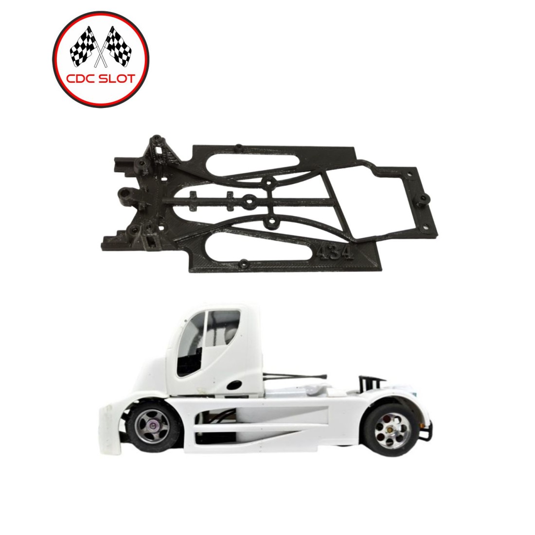 Chasis 3D anglewinder para Buggyra MK002 SKRT4 de Fly. Compatible con bancada RT4 de Scaleauto o AW12 de CDC Slot. Eje delantero regulable en altura mediante tornillos allen M2. Con pasacables. Apto para guías de 3,5 de diámetro en su eje. Flexible, ligero y resistente.