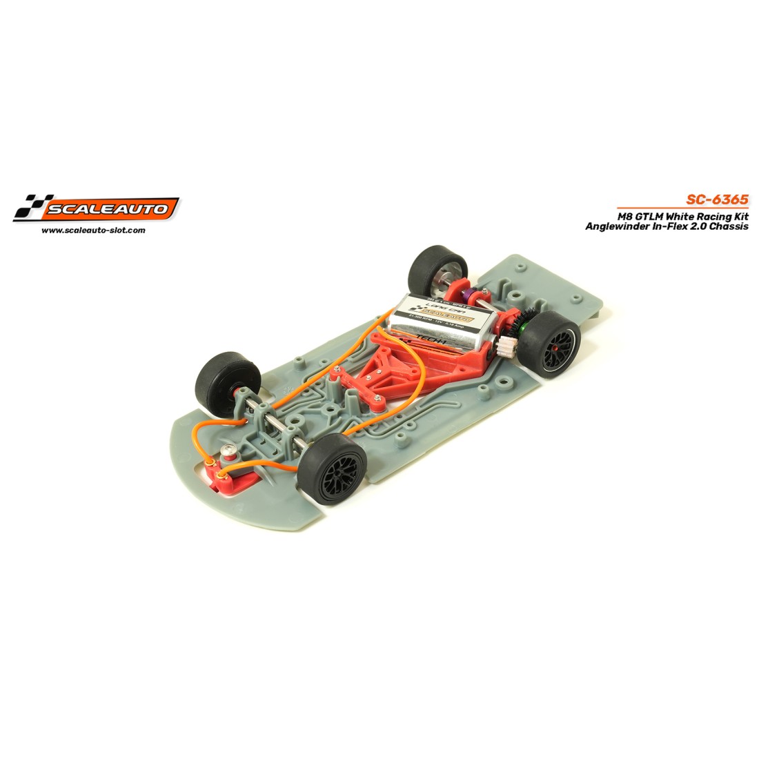 M8 GTLM White Racing Kit Anglewinder In-Flex 2.0 Chassis Kit completo del M8 GTLM con carrocería en kit blanca sin pintar y chasis completamente montado.