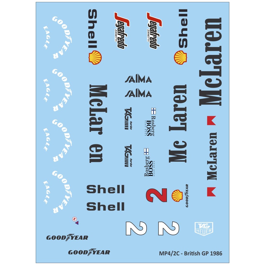Calcas al agua, escala 1/32,  para decoración de McLaren MP4-2C British GP #2, Piloto: Rosberg