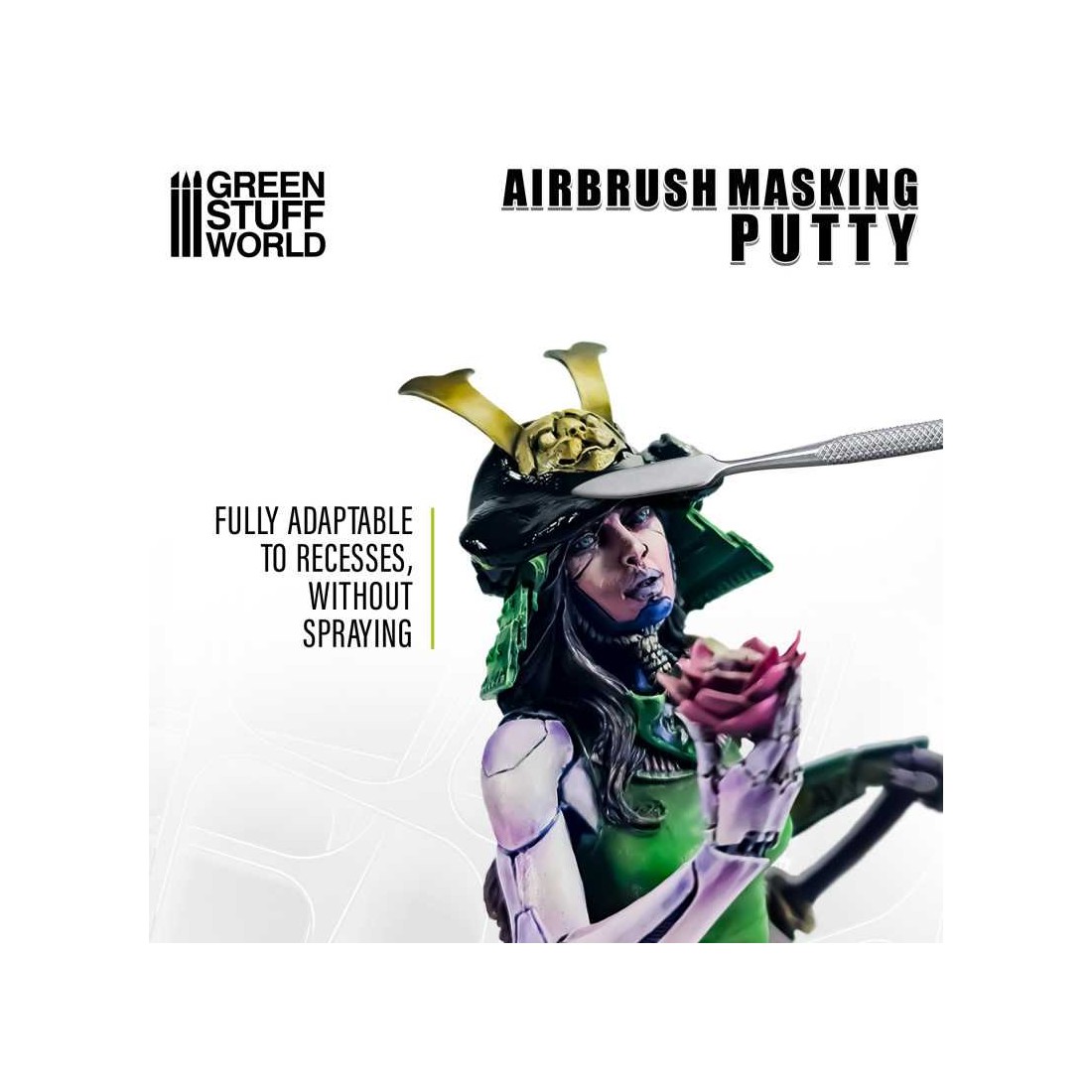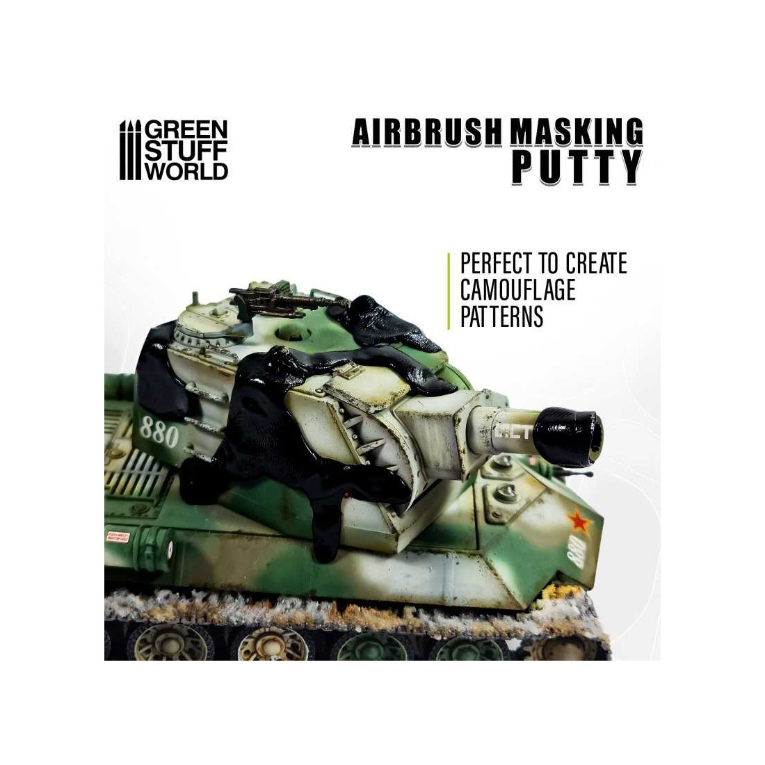 La masilla de enmascarar para aerógrafo es un material flexible y reutilizable diseñado para proteger áreas específicas de tu modelo durante el proceso de pintura. Su textura adaptable permite crear barreras temporales en cualquier superficie, logrando bordes limpios y definidos sin dejar residuos.