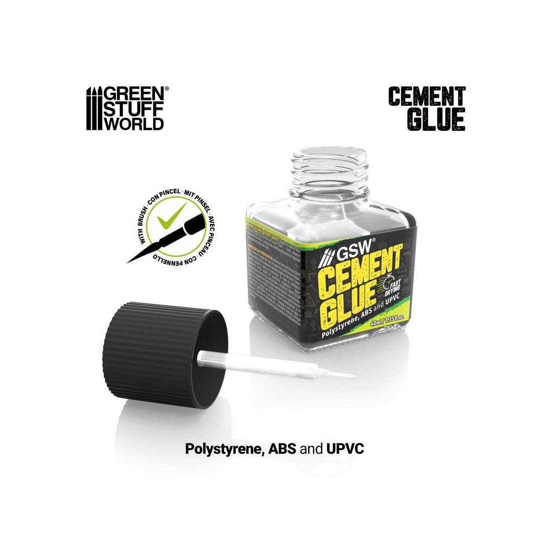 Este adhesivo se presenta en forma líquida y se aplica sobre las zonas a unir. Al hacerlo, funde parcialmente el plástico, generando una “soldadura” que asegura una conexión sin juntas visibles. Este efecto lo hace ideal para trabajar con Poliestireno (PE), ABS, PVC y plasticard, materiales comunes en el mundo del modelismo.