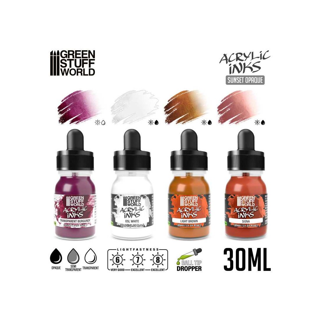 Las tintas acrílicas opacas de Green Stuff World están formuladas con pigmentos de alta calidad y una base acrílica ultrafluida, ofreciendo una solución versátil y profesional para proyectos de miniaturismo, dioramas, maquetas, cómic o caligrafía. Su fluidez y cobertura las hacen ideales tanto para uso con pincel como con aerógrafo, sin necesidad de dilución previa.