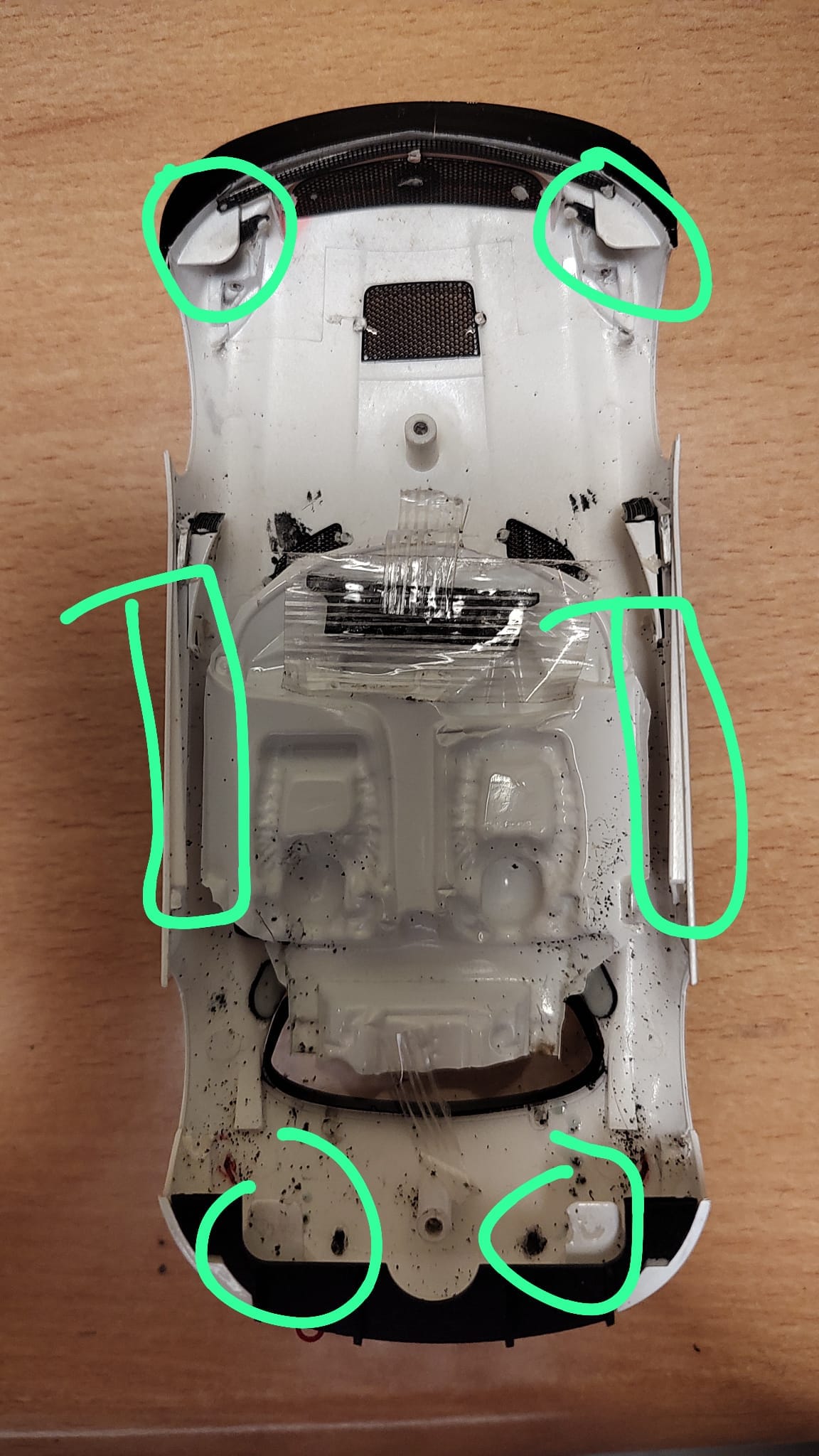 Otro punto fuerte para elegir este modelo es que tenga unos buenos puntos de apoyo sobre el chasis. El Mercedes SLS de Scaleauto tiene uno justo en cada esquina.