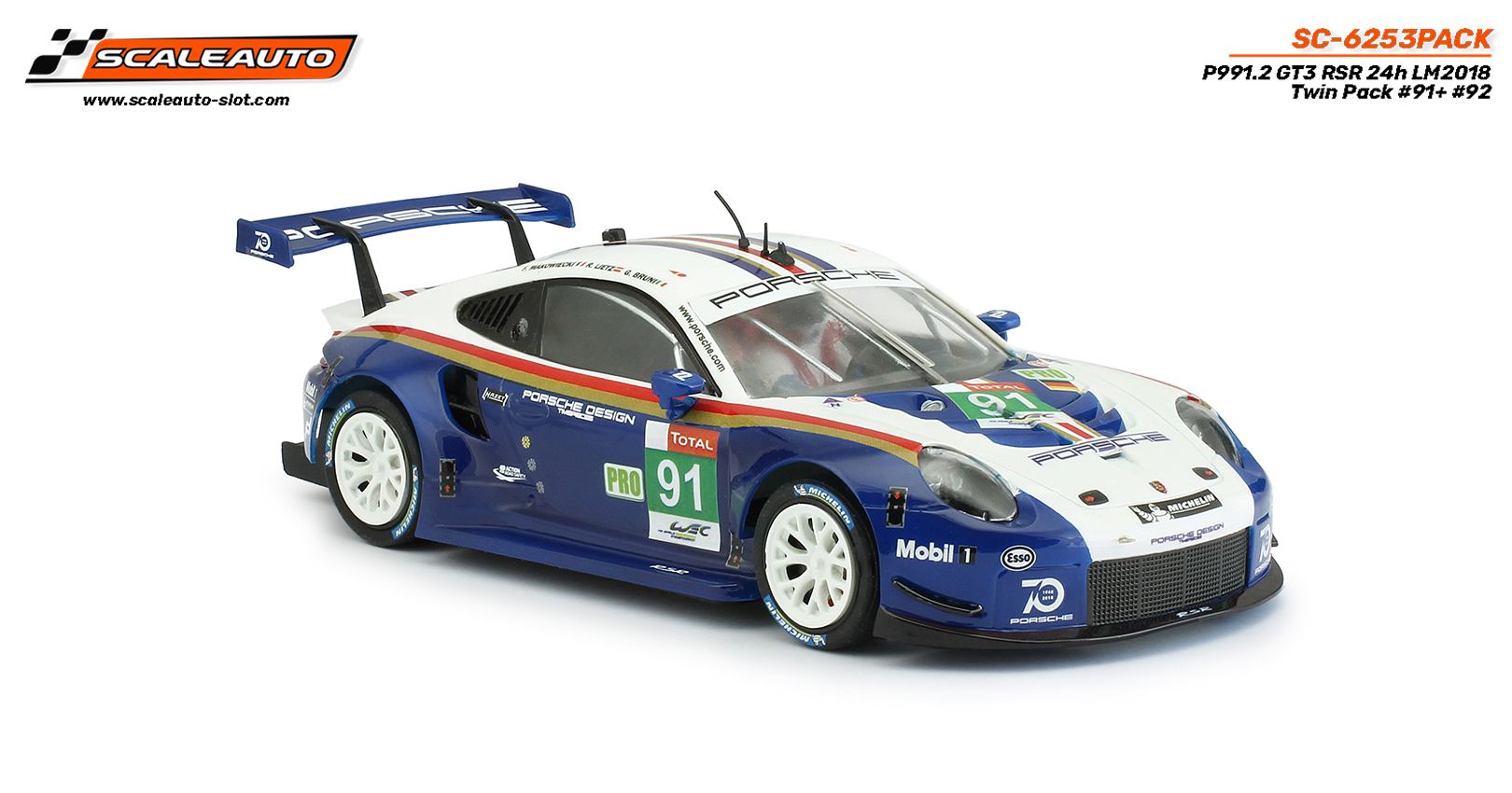 Aunque ya había sido anunciado en la web de Scaleauto no aparecía ninguna fecha estimada, pero esta semana Scaleauto ha anunciado que llegarán próximamente a las tienda esta preciosa caja conmemorativa de las 24h de LeMans de 2018 donde con 2 decoraciones míticas Porsche se hizo con las dos primeras posiciones en la categoría GTEPro.