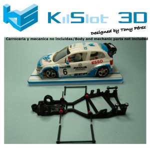 Kilslot 3d nos trae 2 chasis para correr en esta categoría, cuya única diferencia entre ellos es la utilización de rodamientos en el eje delantero en el v2. Estamos hablando de unos chasis comerciales que con piezas que perfectamente podemos montar en un coche de Super N van a rodar en unos tiempos muy cercanos a los de un WRC convencional, pero a un precio muy inferior y mucho más fácil de montar y conseguir los materiales.