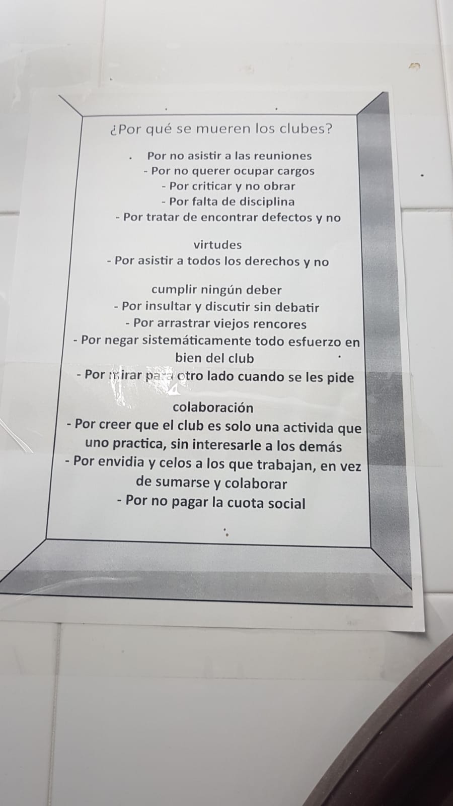 Entonces me contó que el Club de Slot Medina lleva desde 1993 funcionando y que este cartel está repartido por el club en varios puntos y que es algo que intentan inculcar a todos los socios para mantener el club con buena salud.